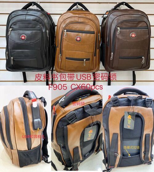 Mochila couro sintético com cadeado e usb