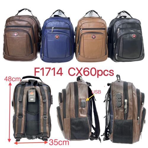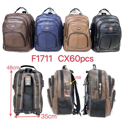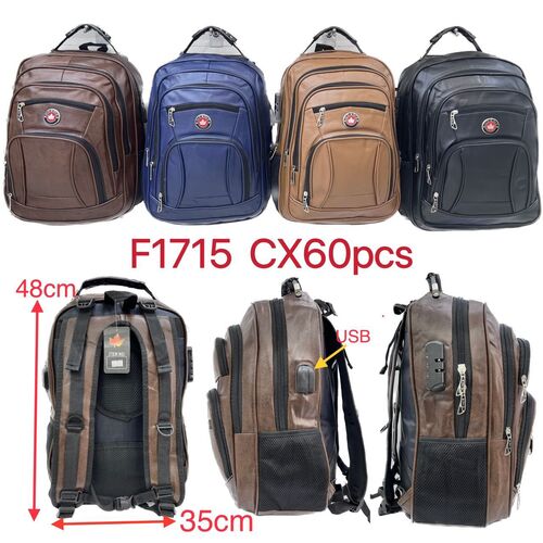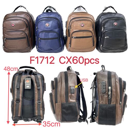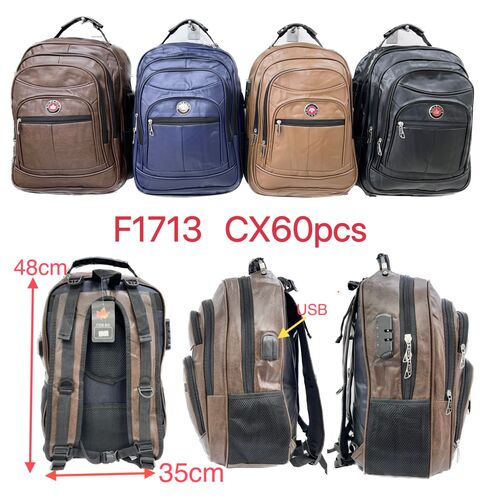 mochila couro sintetico com cabo de aco cadedo e usb